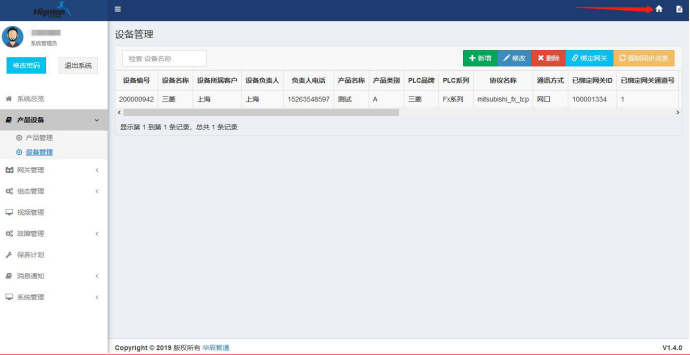 7.新增設(shè)備:選擇設(shè)備管理點擊【新增】,填寫設(shè)備信息,如下圖所示