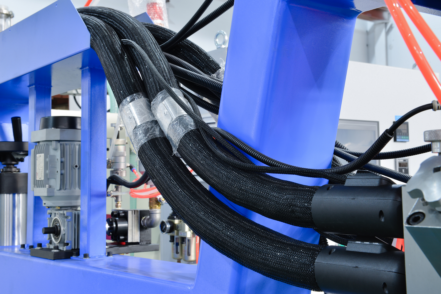 整機采用PLC控制,溫度、轉(zhuǎn)速、壓力等參數(shù)設(shè)定方便。