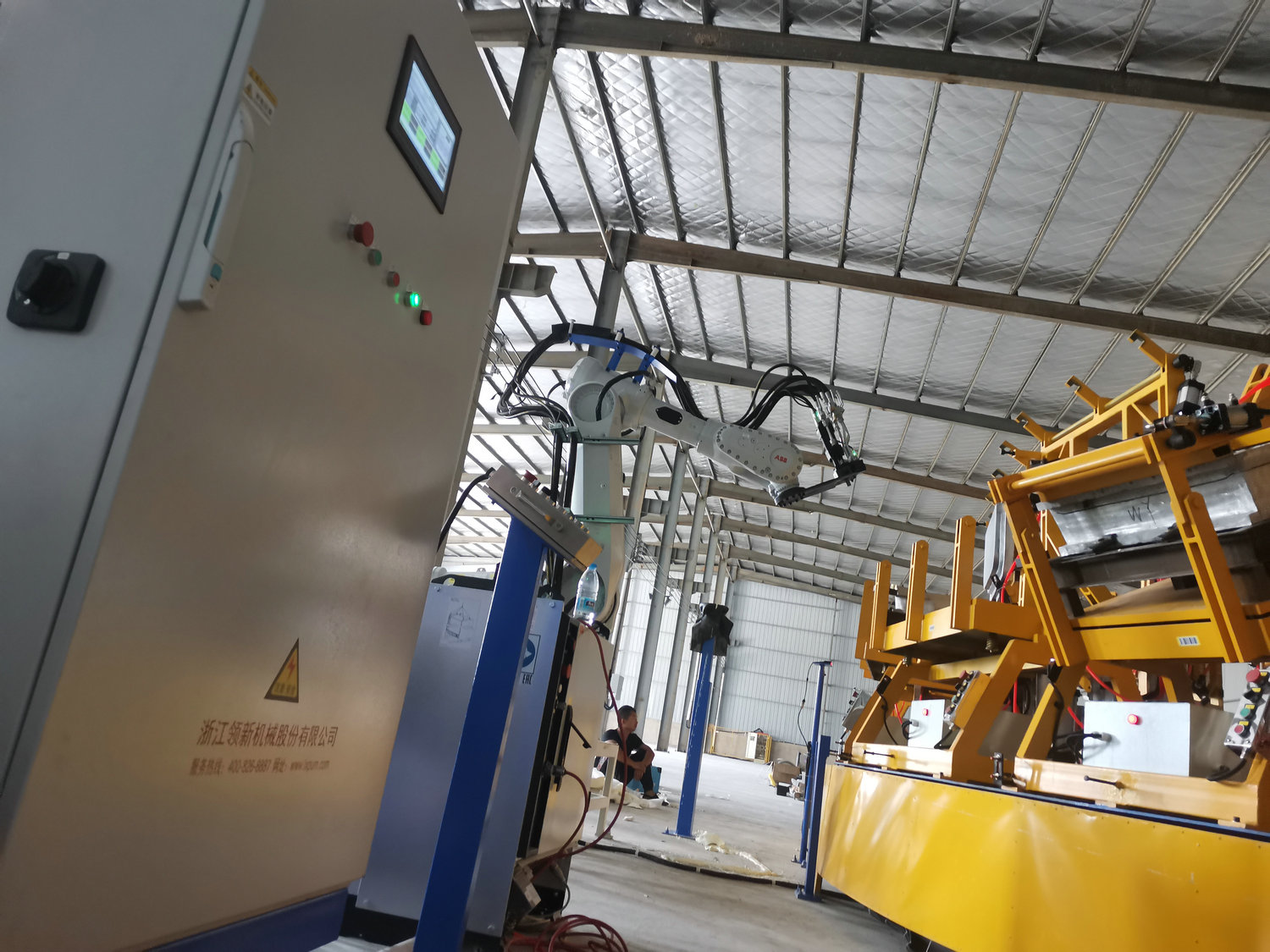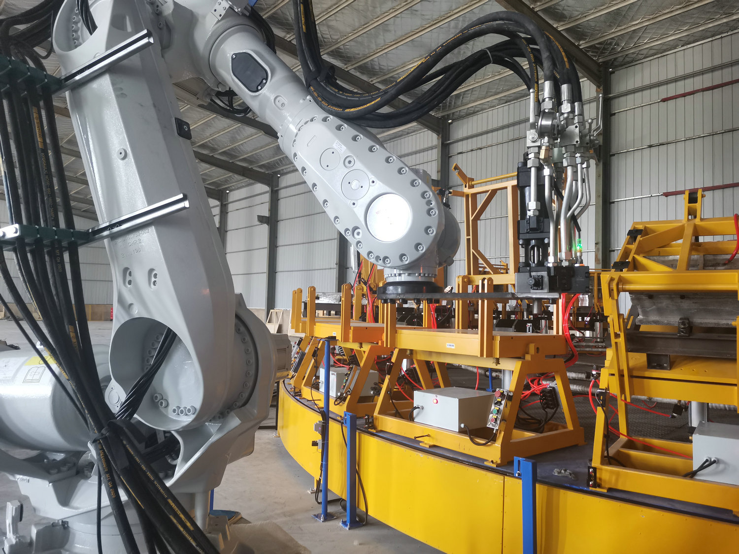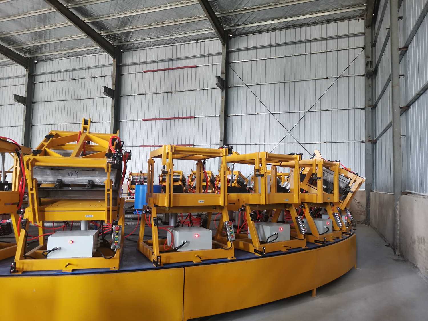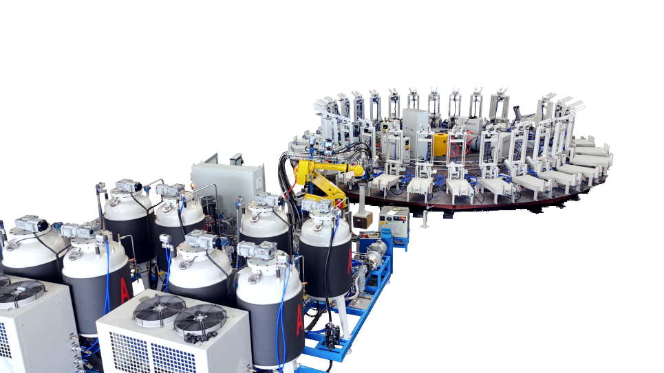 圓盤生產(chǎn)線由高壓發(fā)泡機(jī)、機(jī)械手、模架、模溫機(jī)、圓形轉(zhuǎn)盤、掃碼器、自動(dòng)控制系統(tǒng)等各裝置組成