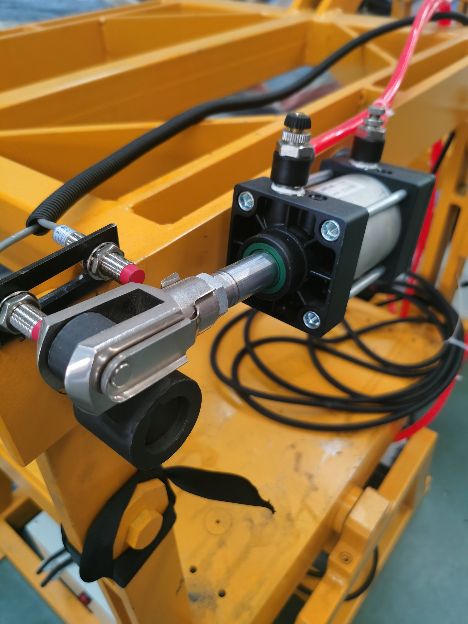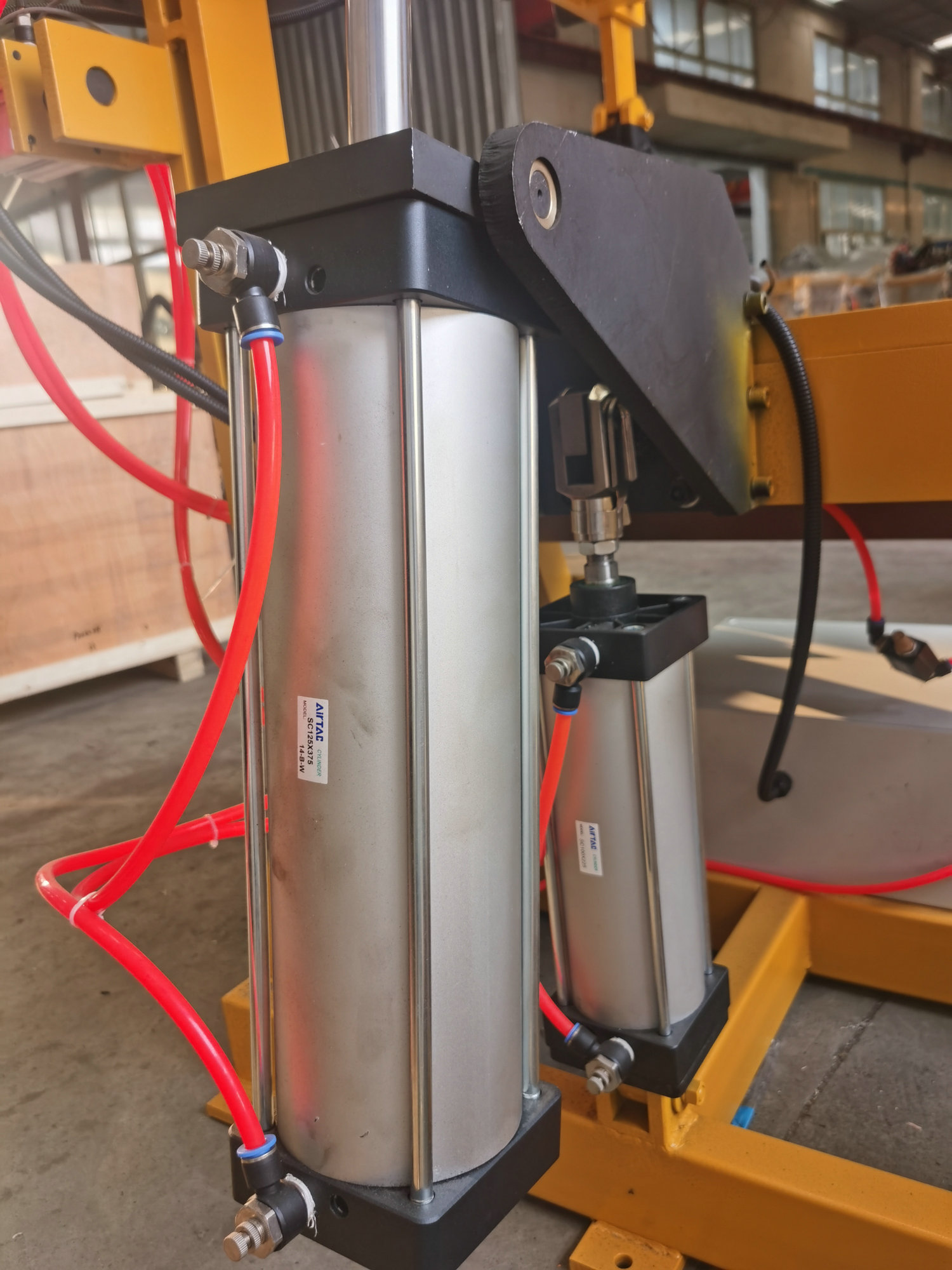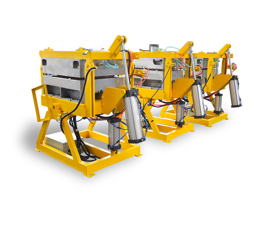 氣動模架由底座、上架、載模板、轉(zhuǎn)動銷、轉(zhuǎn)動連板、氣動回路以及控制電路構(gòu)成,采用PLC控制,由氣缸完成開合模及鎖模動作。