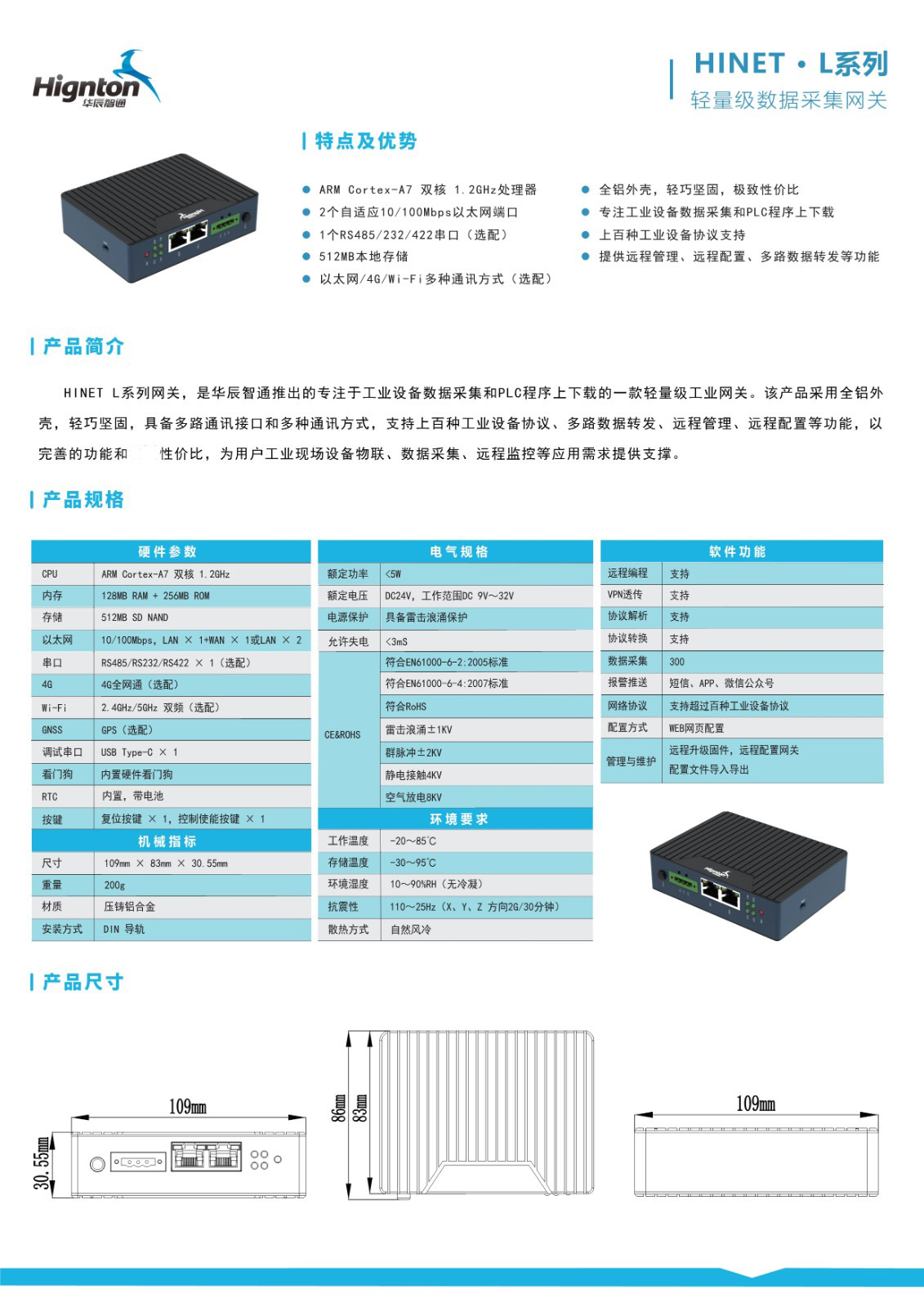 HINET L系列網關,是華辰智通推出的專注于工業(yè)設備數(shù)據(jù)采集和PLC程序上下載的一款輕量級工業(yè)網關。該產品采用全鋁外 殼,輕巧堅固,具備多路通訊接口和多種通訊方式,支持上百種工業(yè)設備協(xié)議、多路數(shù)據(jù)轉發(fā)、遠程管理、遠程配置等功能,以 完善的功能和性價比,為用戶工業(yè)現(xiàn)場設備物聯(lián)、數(shù)據(jù)采集、遠程監(jiān)控等應用需求提供支撐。